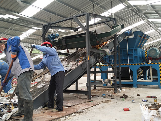 大件垃圾破碎机可以对大件沙发,床垫,家具,衣柜等进行撕碎与减容。撕碎工艺主要包括撕碎—筛分—除铁—风选等几道工序。